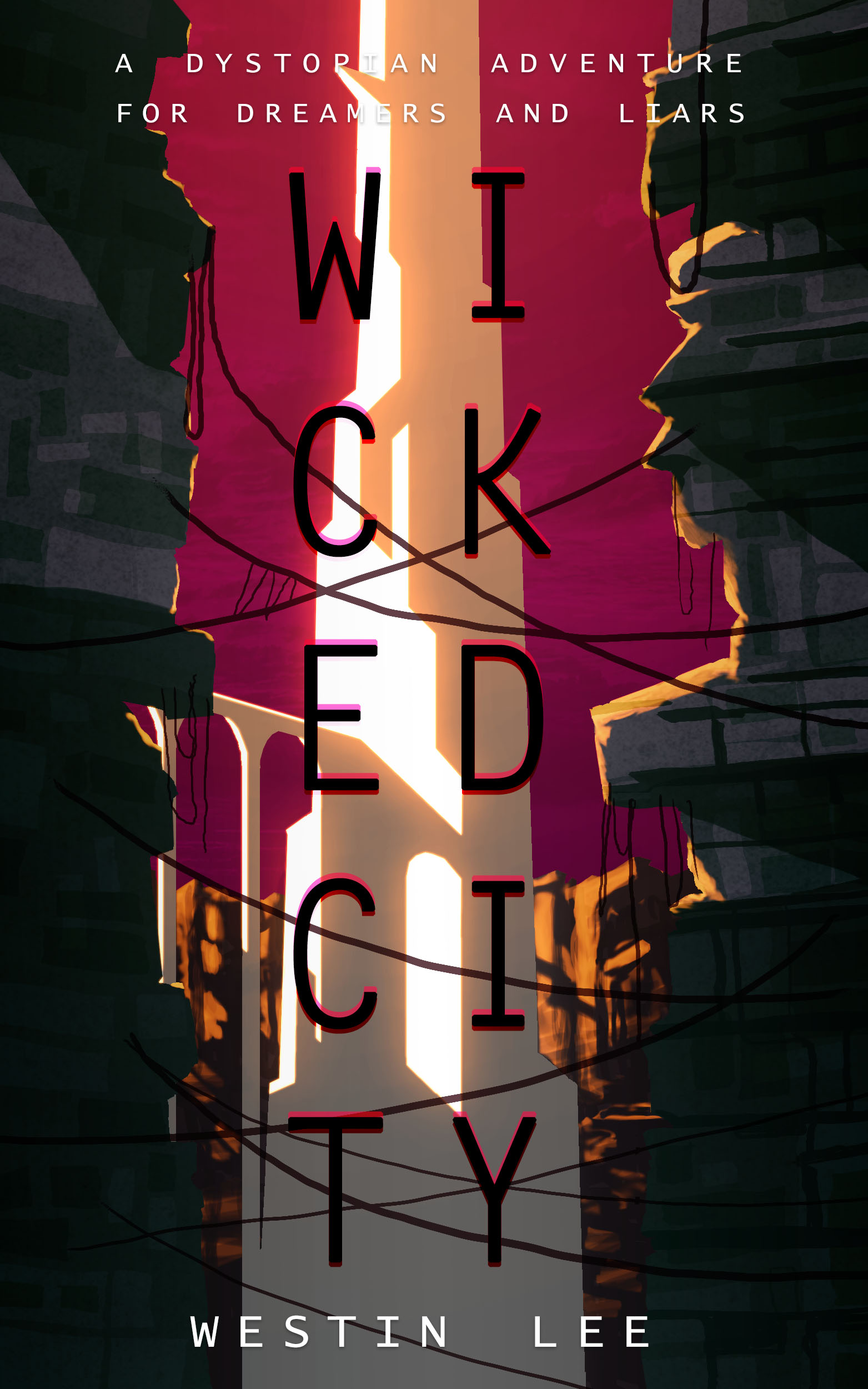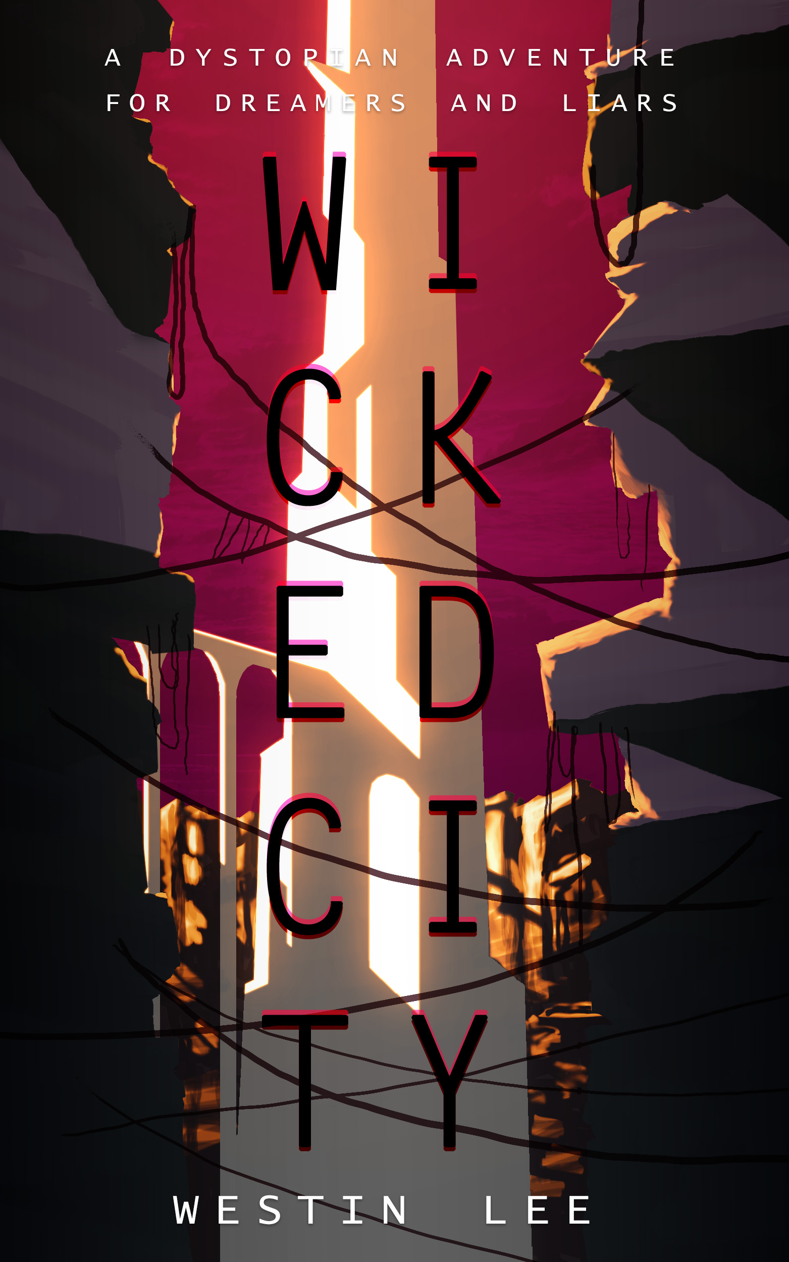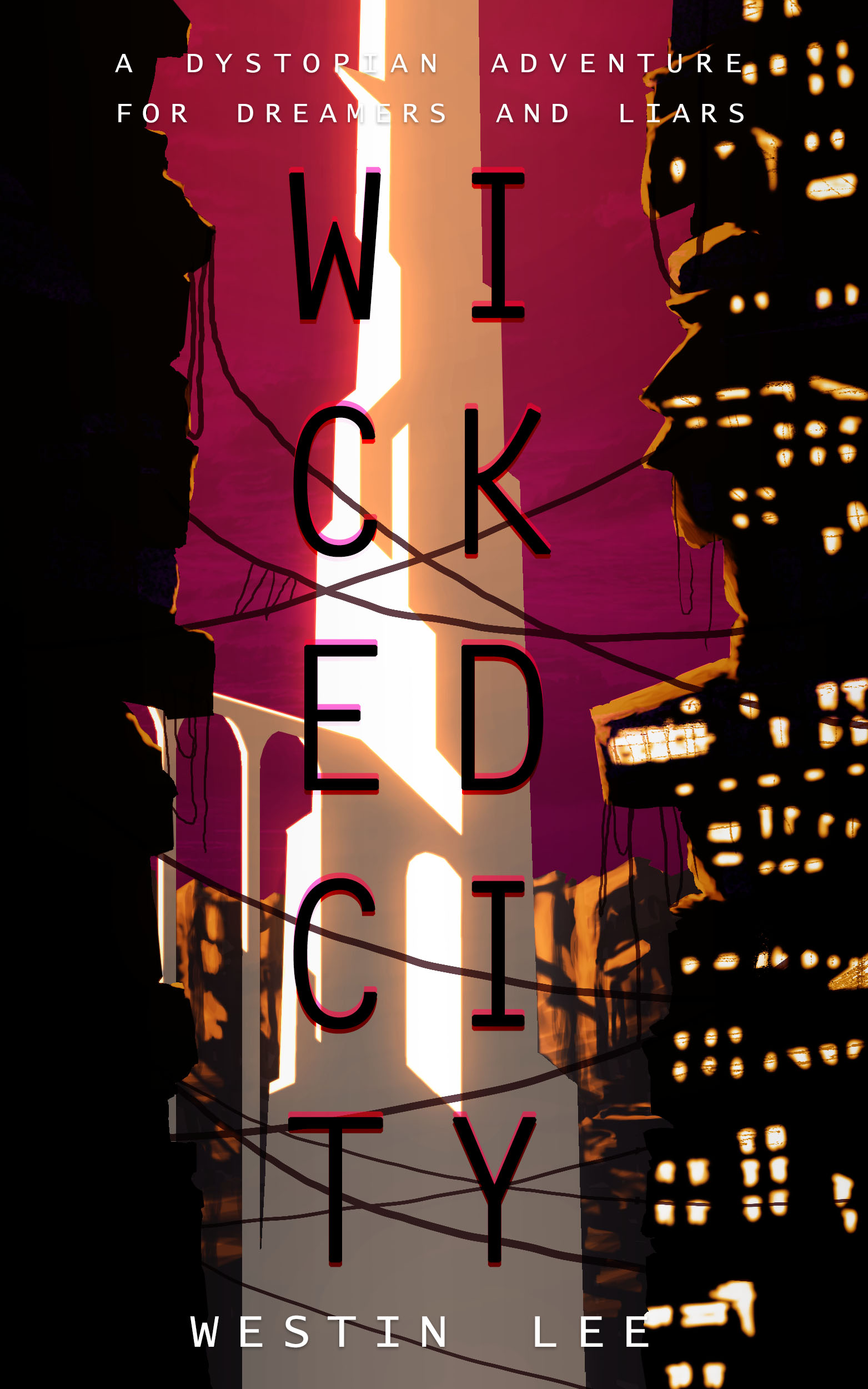 Note I changed the blurb slightly – “A Dystopian Epic for Dreamers and Liars.” I went back and forth on whether to use the word epic, and ultimately I think we see enough of this world that it counts as an epic story. The “dreamers and liars” bit is there to tell the potential audience that this is a story about human arrogance and frailty. Theoretically, dreamers and liars sits on top of the contrast between the city and the pristine Kyrie behind it, and the idea ‘pretty lies hide ugly truths’ seeps in through osmosis.