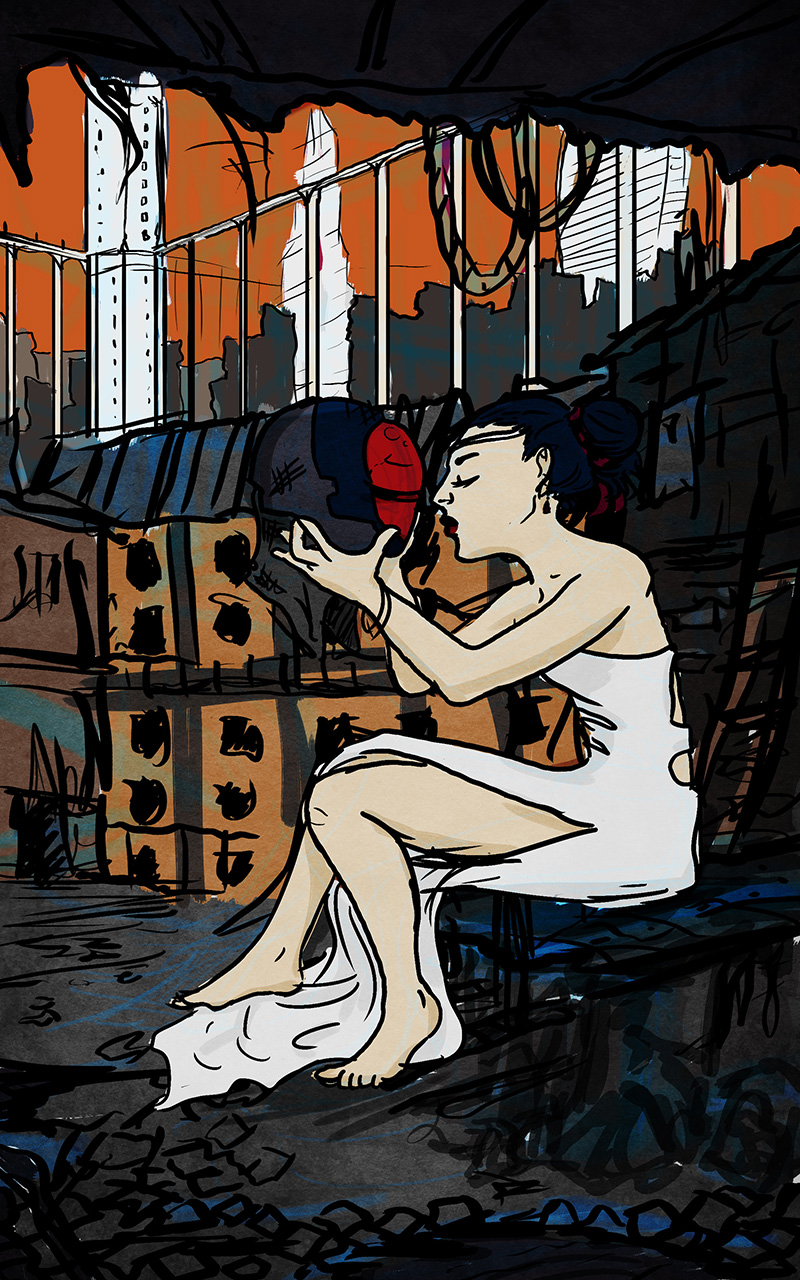 This is an image I created for a defunct website I was to post Wicked City to in parts. While a tad clumsy looking now, it captures the world of the book well. This was the first polished image I created that ‘felt’ like the city and the Kyries. Nod to Ado Ceric, the Lucas at the balcony in the lower right is taken from concept art he did for Wicked City in 2010, when it was still a feature film.